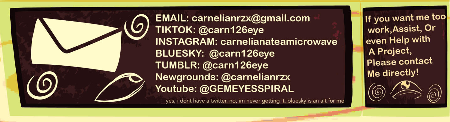 If you want too commission me in any way possible, Scroll all the way up too the page and go too my commission website for more information!
